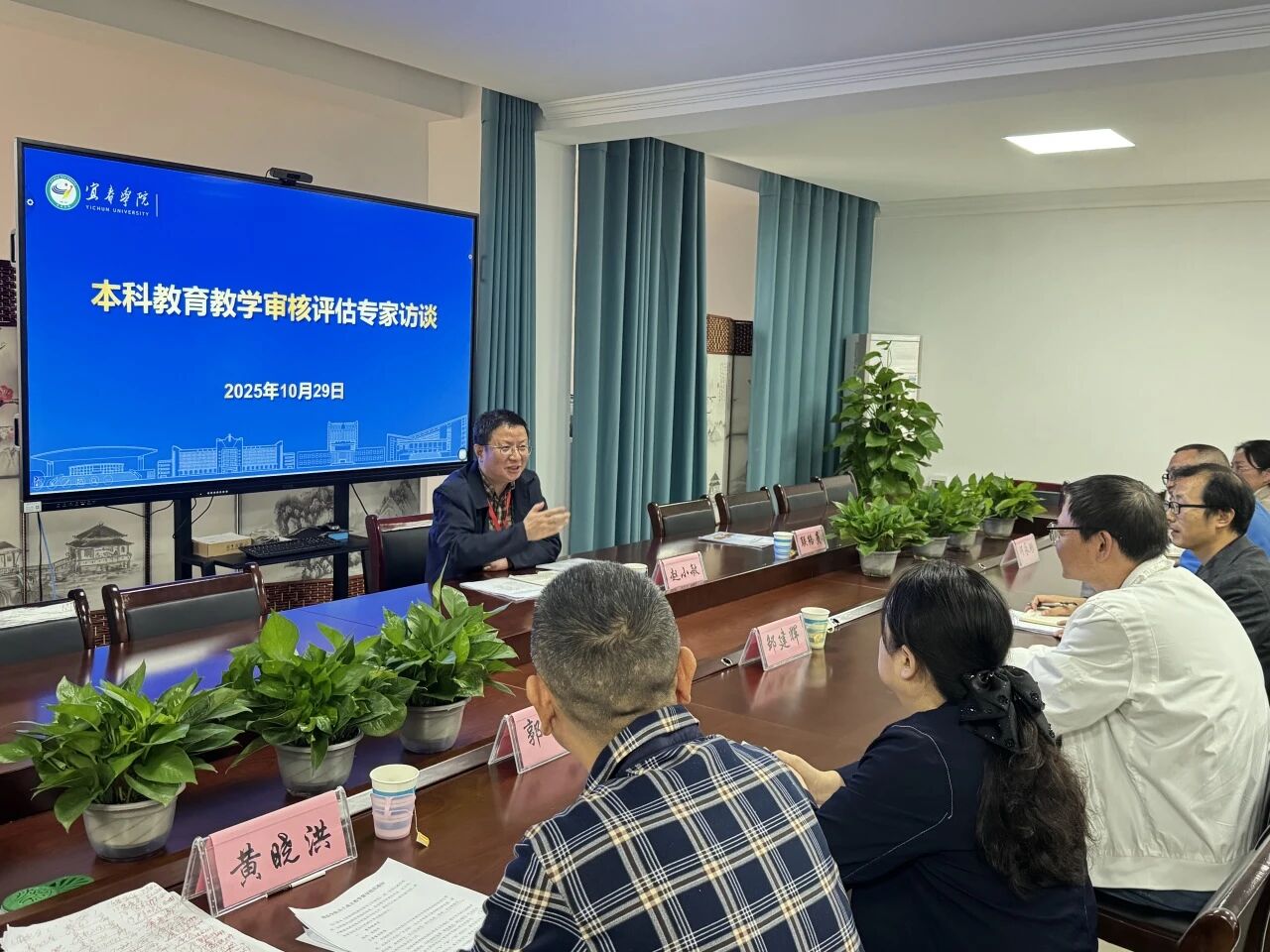张安富组长代表专家组就宜春学院新一轮本科教育教学审核评估的总体意见进行了交流。张安富指出,经过线上评估和入校实地核查,专家组认为,宜春学院积极融入教育强国和教育强省建设大局,办学定位精准对接江西省及宜春市发展战略需求着力培养“下得去、留得住、用得上、干得好”的高素质应用型专业人才。学校办学底蕴深厚,服务地方目标明确,改革举措务实有力,发展态势持续向好,是一所扎根地方、特色鲜明的应用型高校,整体办学成效位居全省地方应用型高校先进行列。