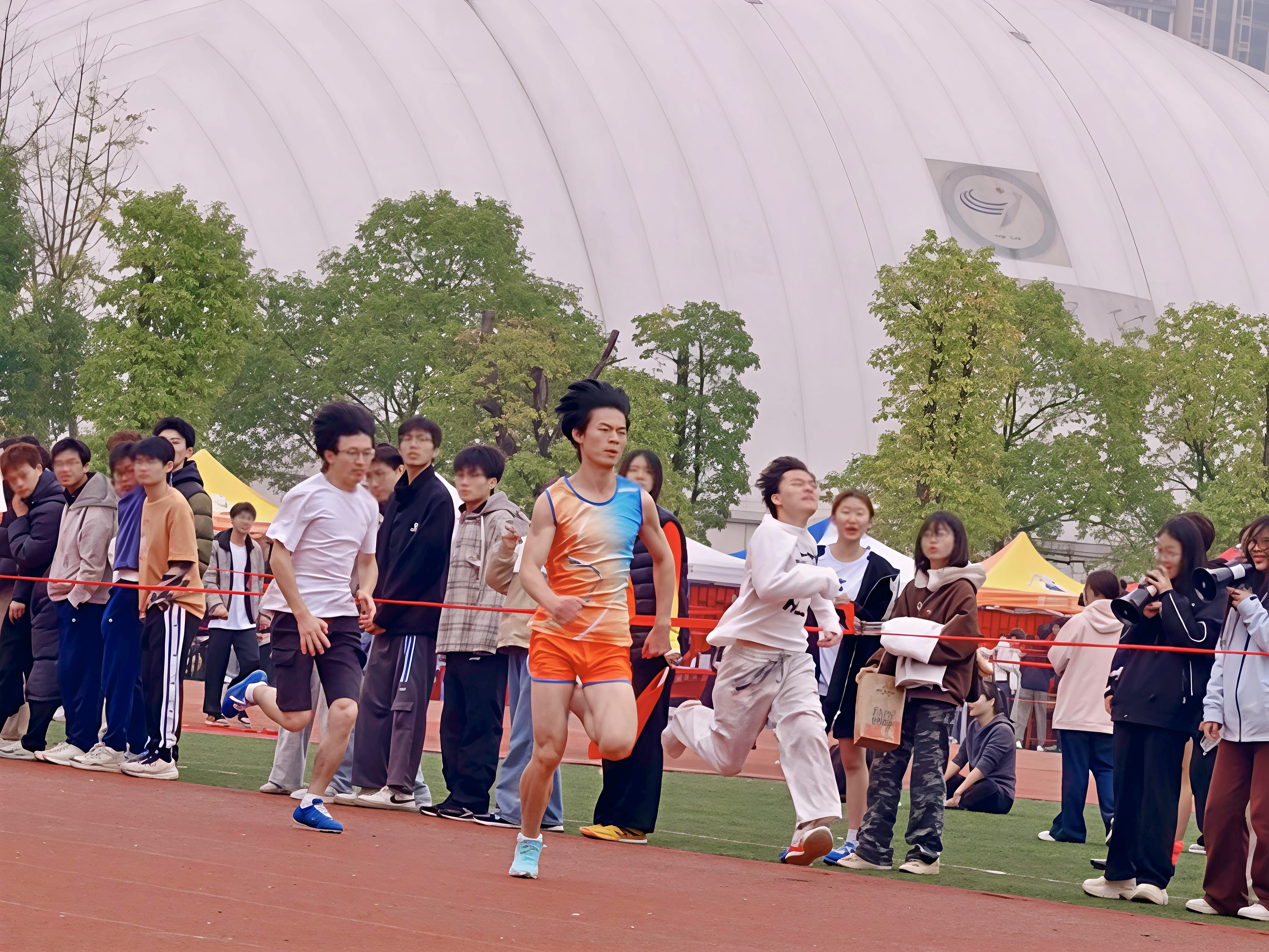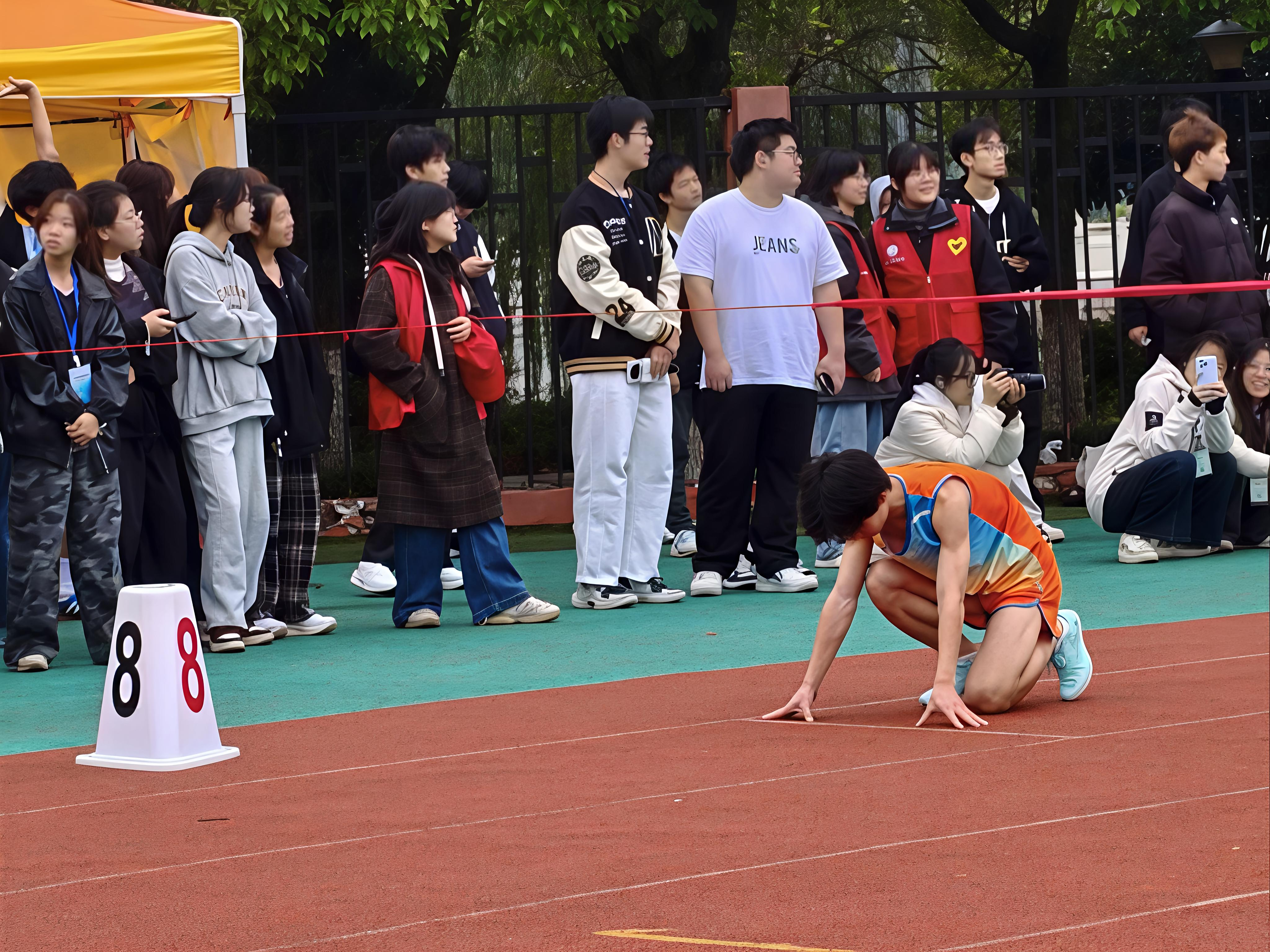 当接力棒传至最后一棒,全场气氛推向顶峰。他们承接全队的汗水与希望,发起终极冲刺。摆臂幅度越来越大,步频越来越快,肌肉的酸胀被必胜的信念压倒,震耳的欢呼化作最激昂的冲锋号。看台上的呐喊愈发热烈,连平日最文静的同学情不自禁地起身挥臂,声音嘶哑却依然全力呐喊。当身影冲破终点线的瞬间,不论胜负,队友们都从四方涌来,拥抱、击掌、欢呼。递上的矿泉水、为彼此擦去的汗水、那句“你太棒了”的真心赞叹……胜利的狂喜与并肩作战的感动,在此刻汇聚成温暖的海洋。