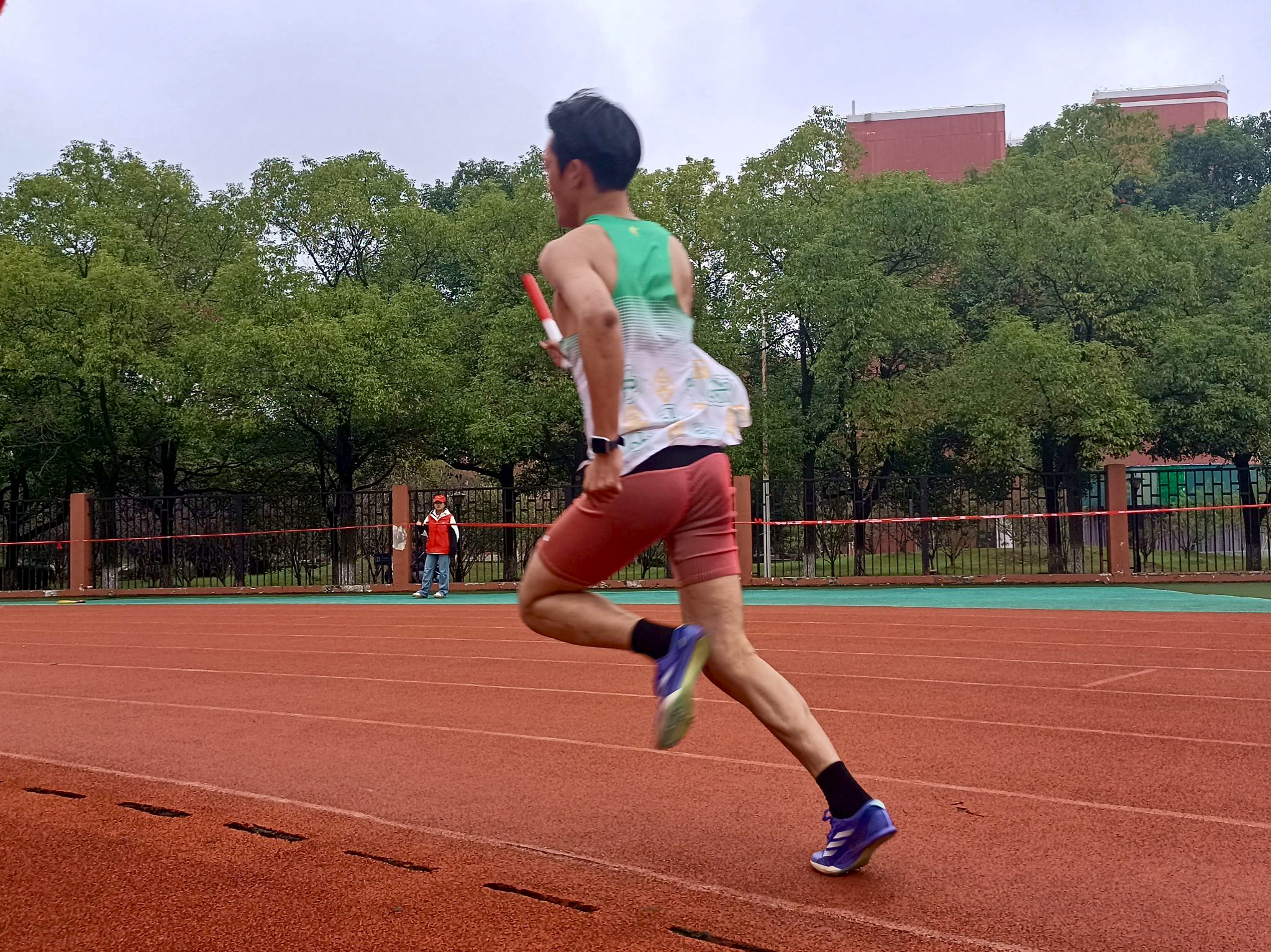 接力赛的灵魂,在于那电光火石间的交接棒。为了这短短的几秒,队员们曾在放学后的黄昏与清晨的微光中反复磨合——从起跑时机到站位距离,从传递手势到眼神交流,千锤百炼,只为赛场上的万无一失。比赛中,接棒者提前侧身,目光紧锁来棒;交接瞬间,两人心领神会,在高速奔跑中完成信任的传递。没有犹豫,没有停滞,那根小小的接力棒,在掌心间传递的不仅是速度,更是毫无保留的托付。偶有队伍出现失误,听不见半分埋怨,唯有迅速调整、奋起直追,用行动呐喊“我们同在”!
