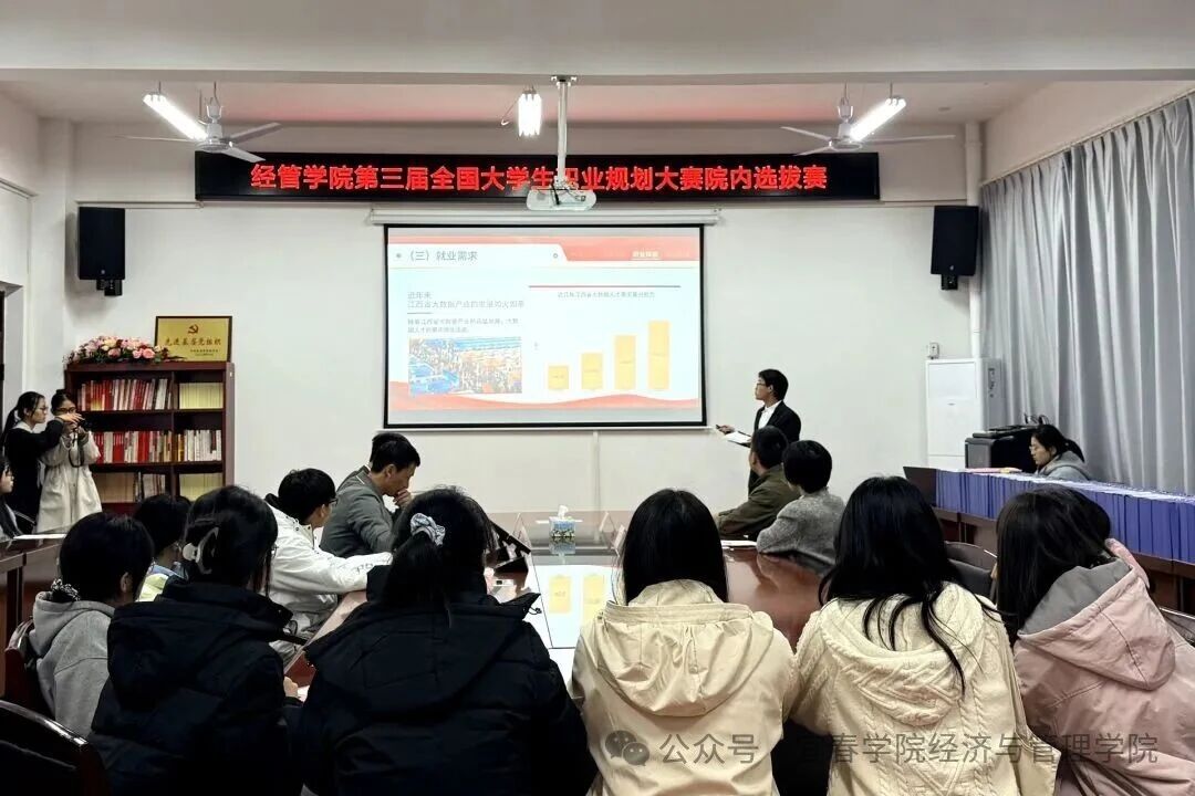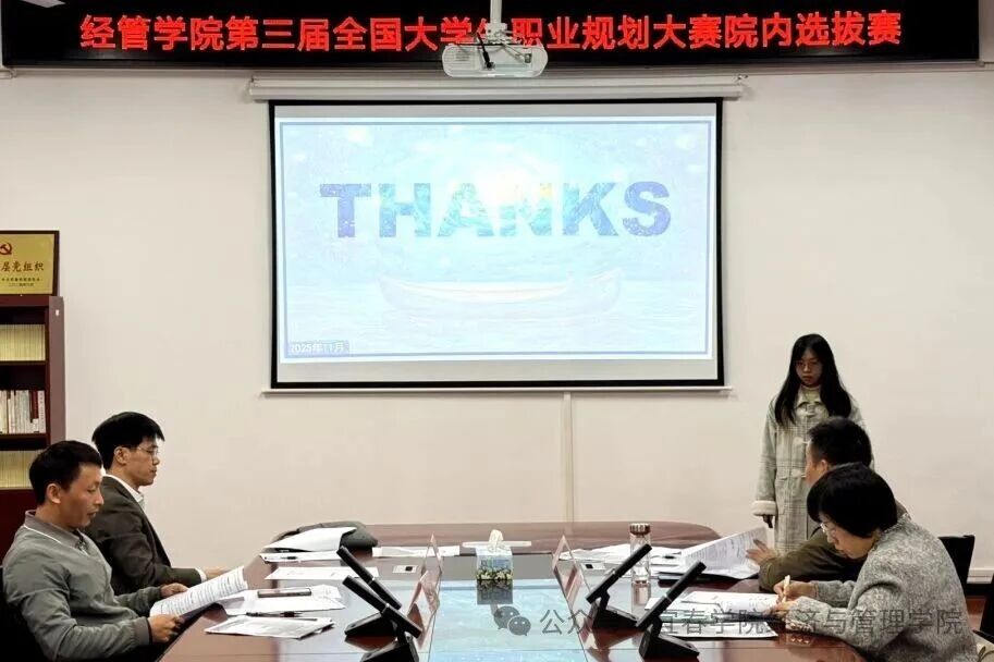 本站讯(学生记者 陈雨馨 李安芸 匡钰柔)为引导学生树立正确的成才观、就业观,科学规划职业生涯,11月28日晚,我院在笃行楼305成功举办第三届全国大学生职业规划大赛院内选拔复赛。本次比赛邀请学院副院长喻均林、工商管理教研室主任温娜、经济学教研室主任黄怀雄、学生第一党支部书记李将敏担任评委,共有8名选手晋级此次复赛环节。