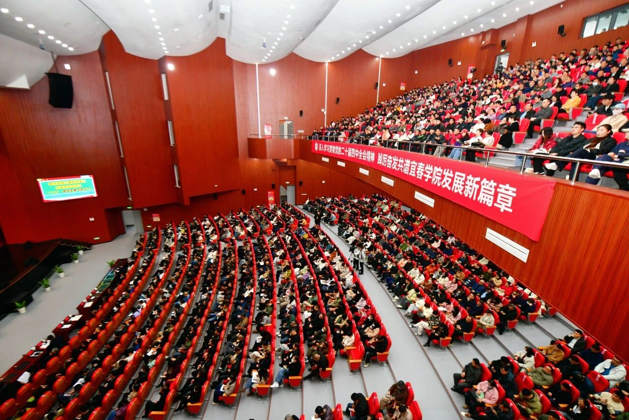 为深入学习贯彻党的二十届四中全会精神,立足“三步走”战略,聚焦“五宜”大学建设,进一步统一全校思想、凝聚广泛共识,踔厉奋发共谱宜春学院发展新篇章,12月10日下午,我校在校本部文化艺术中心召开全校教职工大会。全体在家校领导、全校教职工1300余人参会,会议由校党委书记李国金主持。