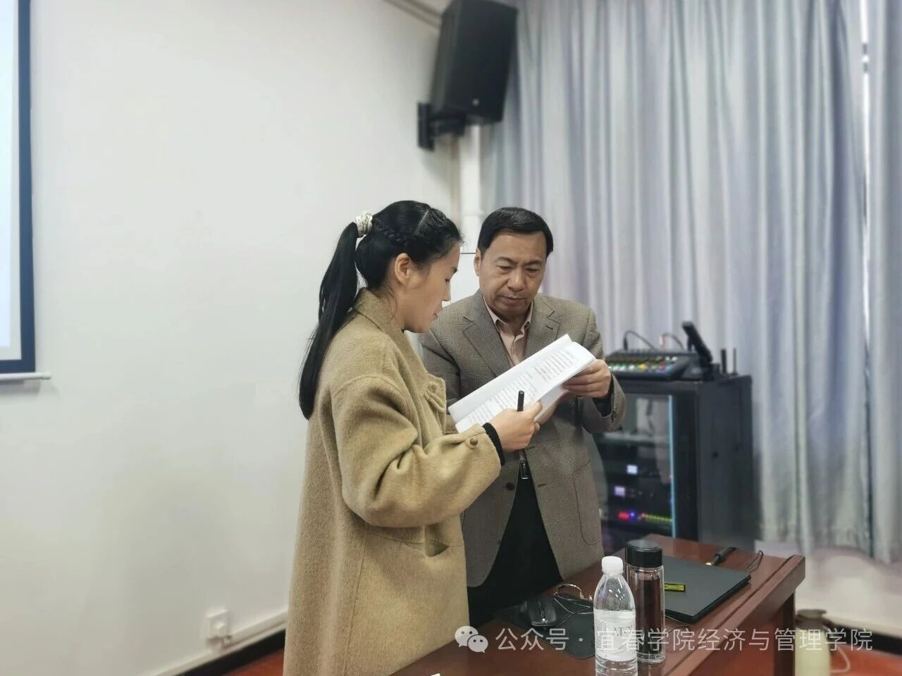 讲座最后,熊珍琴院长作总结发言,对赵春明教授的精彩分享表示感谢,并期待我院教师能将所学转化为科研动力,进一步提升学术研究水平。讲座在热烈的掌声中圆满结束。辅导会后,赵老师仔细审阅了多位教师的申报材料,并逐一进行了深入、细致的指导分析和点评。他充分肯定了各位教师在选题立意、前期基础等方面展现出的优势与潜力,更精准、犀利地指出了申报书中存在的共性问题和个性化不足,提升我院教师的项目申报质量与竞争力。