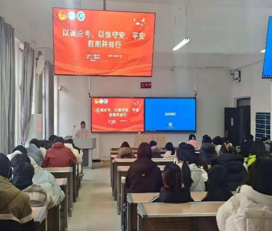 全院各班级集中召开“诚信应考守底线 平安假期护周全”主题班会。辅导员、班主任深入班级,带领学生学习学校考风考纪及处分管理相关规定,组织签订诚信考试承诺书,并结合典型案例开展警示教育,营造“以诚信为荣、以作弊为耻”的应考氛围; 在假期安全方面,班会重点讲解防诈骗、防盗抢、交通安全等知识,引导学生自觉远离赌博、传销、网络借贷等不良行为,做好冬季传染病预防;此外,针对宿舍安全,重点排查大功率电器、私拉电线等隐患,指导学生离校前关好水电门窗、整理环境卫生、妥善保管贵重物品,规范车辆停放。