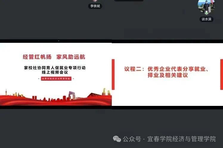 本站讯(学生记者 邓文艳)3月23日,我院以“经管红帆扬 家风助远航”为主题,召开家校社协同育人促就业专项行动线上视频会议。学院教师、企业嘉宾、优秀毕业生、家长代表及毕业生齐聚云端,共话就业、共促成长。