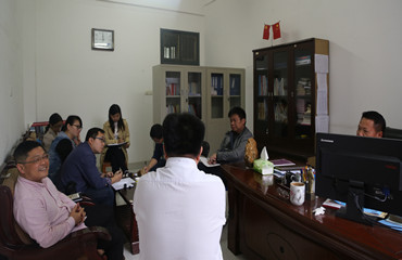 本站讯(学生记者 王瑶 赖远强)4月25日上午,我校学工处处长熊尚鹏、综合科科长袁睿一行到我院就学生思想政治工作进行调研,并开展座谈会。我院党委书记郑宝成,副书记邓彦,团总支副书记李丹丹,学工科老师田献宗、邵南岗、刘婧和黄霞参与会谈。
