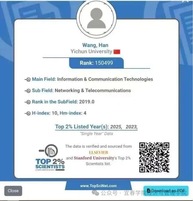 近年来,王涵博士带领团队成果丰硕:发表4篇第一作者/通讯作者ESI 高被引论文,显著提升宜春学院通信领域学术影响力;研究获多项国家级、省级基金支持,并于2022年、2023年分别荣获中国物流与采购联合会科技进步二等奖、中国商业联合会科技进步三等奖。